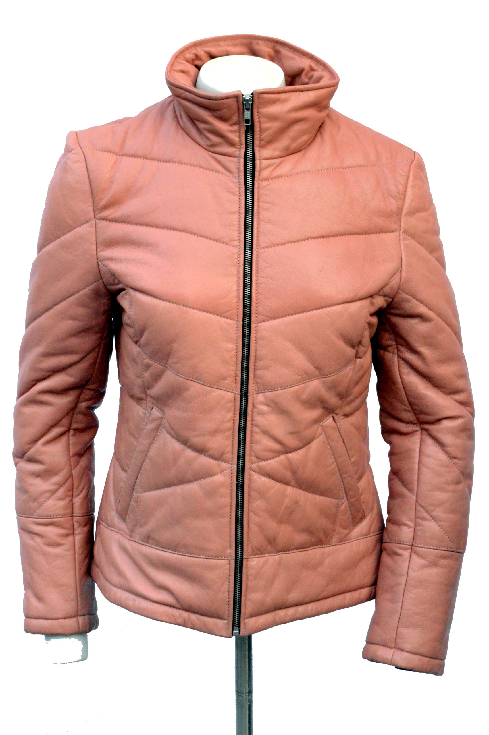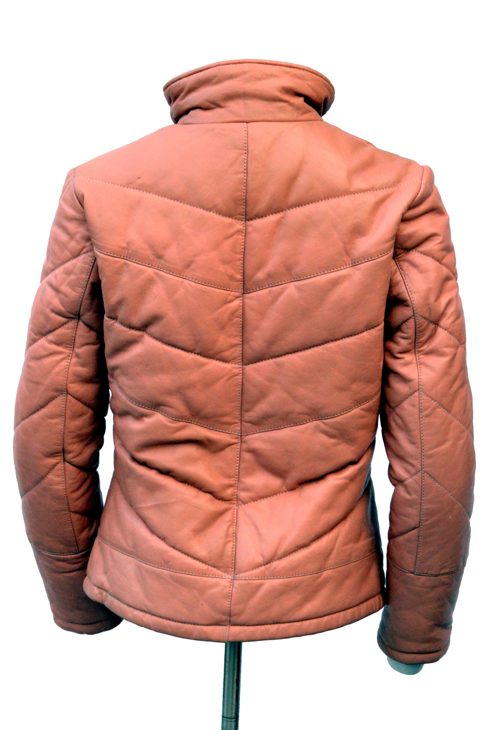 LTL 2127 is a stylish women’s quilted puffer leather jacket crafted from soft sheep napa leather. Featuring a slim-fit silhouette, band collar, front zip closure, and two practical pockets, it offers a lightweight, breathable, and cozy look perfect for all-season wear.